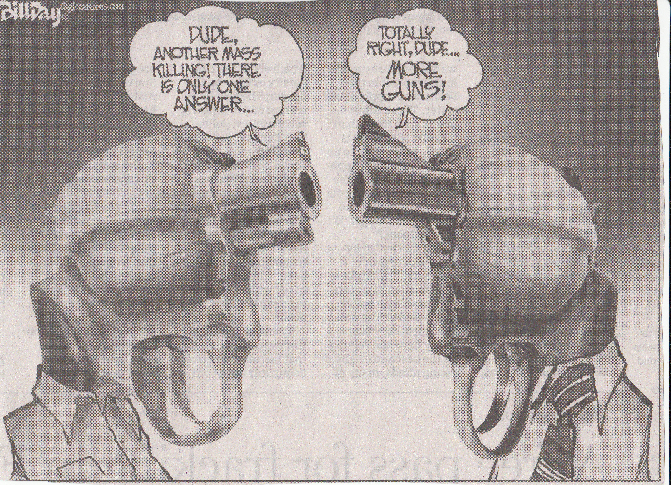 Guns kill people, and not only deranged people with guns kill people. The situation in this country has deteriorated into such utter absurdity that it would be funny—were it not so tragic.